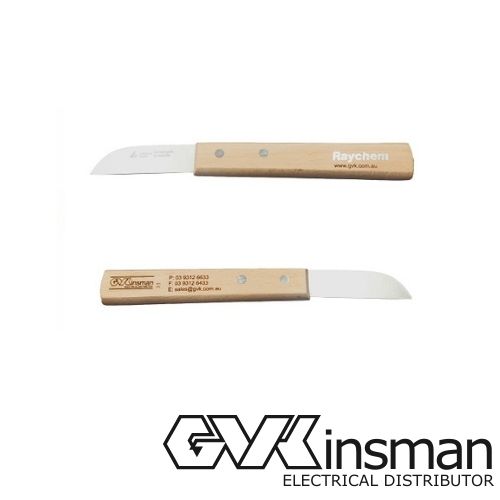 The GVK "Raychem knife" with it's branded wooden handle is a traditional cable jointers knife with a precise, sharp, durable wedged blade.