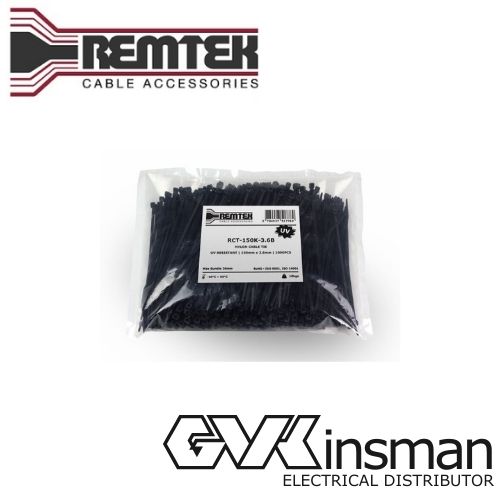 - CABLE TIE 150MM L X 3.6MM W BLACK BAG OF 1000