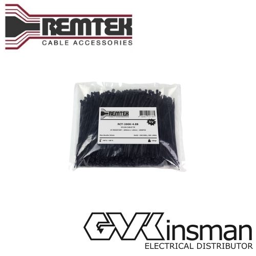 - CABLE TIE 200MM L X 4.8MM W BLACK BAG OF 1000