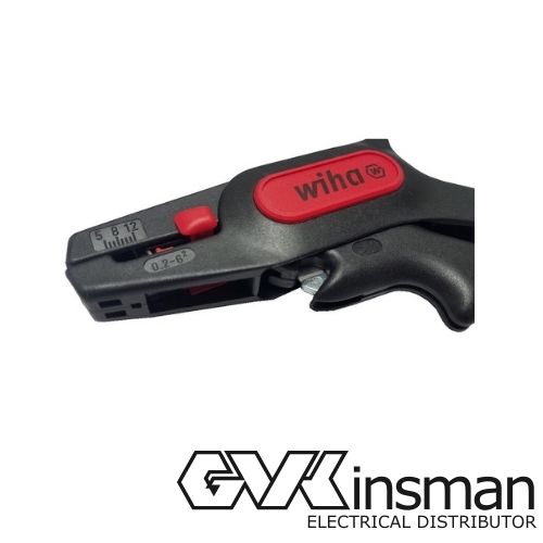 Wiha cable striper for stripping of all commonly used flexible and solid conductors, wire cutter for cutting of Cu and Al conductors to max. Ø2mm Can strip back up to 12mm. Includes easily accessible wire cutter.
